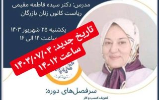 اطلاعیه ⭕تغییر تاریخ برگزاری کارگاه آموزشی شورای آموزش کانون زنان بازرگان تهران برگزار میکند: کارگاه آموزشی 🪪ایجاد و راهاندازی کسبوکارهای کوچک با تدریس خانم دکتر مقیمی ریاست کانون زنان بازرگان 🏷️با ارائه گواهی معتبر ✅سرفصلها: [...]